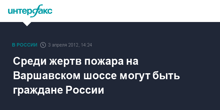 Мсква. 3 апреля. INTERFAX.RU - В Федеральной миграционной службе (ФМС) не исключают, что среди погибших в пожаре на складе на Варшавском шоссе могут быть и российские граждане.