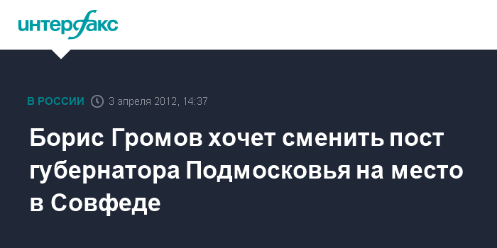 Малый Ярославец. 3 апреля. INTERFAX.RU - Действующий губернатор Московской области Борис Громов заявил, что после ухода с этого поста намерен стать сенатором от области, а также выразил уверенность в том, что новым главой региона станет Сергей Шойгу.