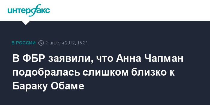 Лондон. 3 апреля. INTERFAX.RU - Предполагаемую сотрудницу российской разведки Анну Чапман экстрадировали из США, так как она подобралась слишком близко к президенту Бараку Обаме.