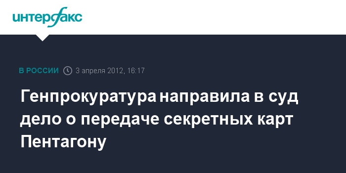 Генпрокуратура направила в суд дело о передаче секретных карт Пентагону