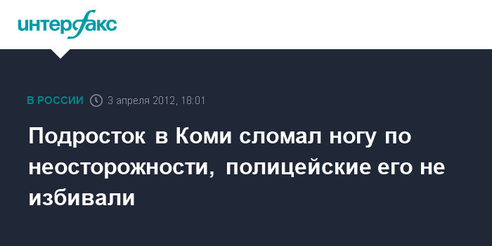Москва. 3 апреля. INTERFAX.RU - Полицейские не избивали 13-летнего подростка в Коми, он сам поскользнулся на льду, заявила уполномоченный по правам ребенка в республике Нелли Струтинская.
