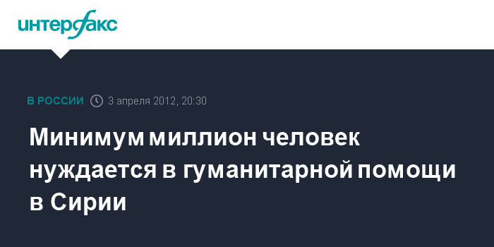 Минимум миллион человек нуждается в гуманитарной помощи в Сирии