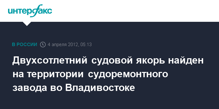 Двухсотлетний судовой якорь найден на территории судоремонтного завода во Владивостоке