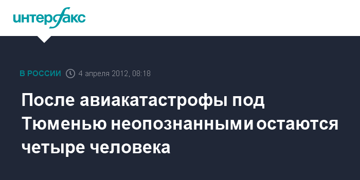 Екатеринбург. 4 апреля. INTERFAX.RU - Опознаны тела 27 человек, находившихся на борту разбившегося самолета под Тюменью, неопознанными остаются четыре погибших авиалайнера, сообщили в среду агентству "Интерфакс-Урал" в Уральском региональном центре МЧС РФ. Для их опознания потребуется молекулярно-генетическая экспертиза, которая займет 2-3 недели. Это время
