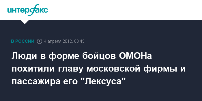 Люди в форме бойцов ОМОНа похитили главу московской фирмы и пассажира его "Лексуса"