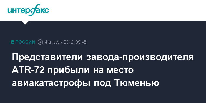Москва. 4 апреля. INTERFAX.RU - Уполномоченный представитель Франции, где был произведен самолет АТR-72, потерпевший катастрофу под Тюменью, прибыл на место крушения, сообщили в Межгосударственном авиационном комитете (МАК).