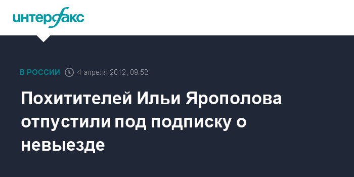 Похитителей Ильи Ярополова отпустили под подписку о невыезде