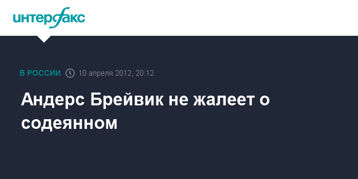 Лондон. 10 апреля. INTERFAX.RU - Норвежский террорист Андерс Брейвик намерен заявить на судебном заседании о том, что он не только не жалеет о содеянном, но даже хотел бы зайти дальше в своих намерениях, сообщает во вторник британская газета The Daily Telegraph со ссылкой на адвоката обвиняемого.