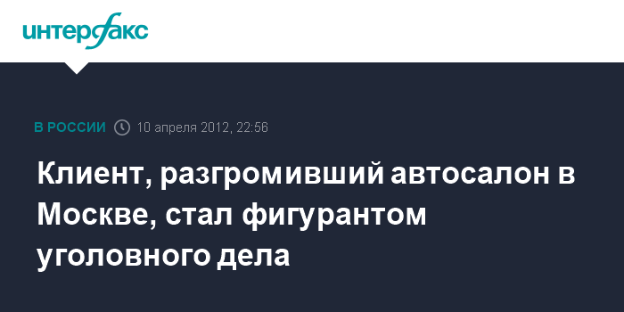 Москва. 10 апреля. INTERFAX.RU - Полиция возбудила уголовное дело по факту погрома, учиненного автолюбителем в автосалоне Nissan на Дмитровском шоссе в Москве, сообщили "Интерфаксу" в пресс-службе столичного ГУ МВД РФ.