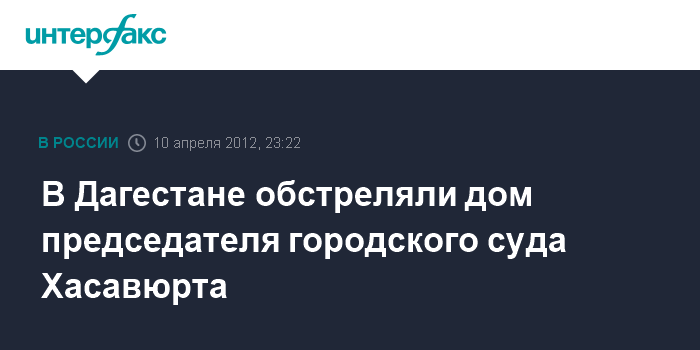 Махачкала. 10 апреля. INTERFAX.RU - В Махачкале неизвестные из гранатомета обстреляли дом председателя федерального суда города Хасавюрт, сообщили "Интерфаксу" во вторник источник в правоохранительных органах Дагестана.