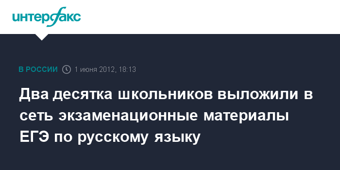 "Во время проведения экзамена были выявлены факты появления в Интернете изображений и фрагментов КИМ по русскому языку. После соответствующей обработки информации установлено более 20 оригинальных источников публикаций из разных регионов, которые затем были растиражированы в Интернете", - сообщили "Интерфаксу" в пресс-службе Рособрнадзора в пятницу.