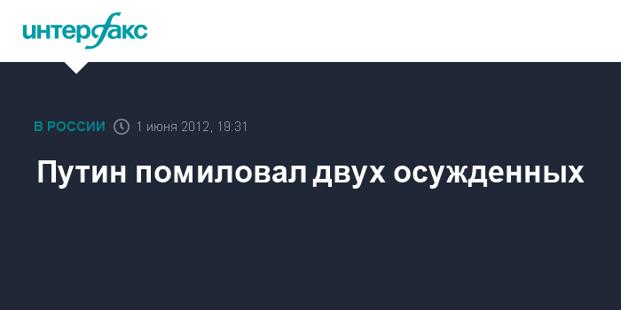 Москва. 1 июня. INTERFAX.RU - Президент РФ Владимир Путин, руководствуясь принципами гуманности, подписал указы о помиловании Сергея Лагуна и Александра Чечурова, сообщается на сайте Кремля.