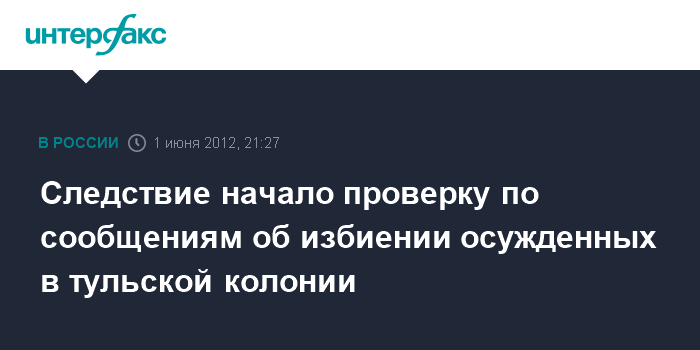В ряде федеральных СМИ в конце мая появилась информация о якобы имевшем место избиении сотрудниками нескольких осужденных, отбывающих наказание в тульской колонии строгого режима.