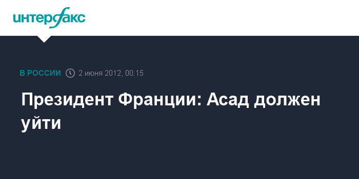 Париж. 2 июня. ИНТЕРФАКС - Ситуация в Сирии требует ухода главы государства Башара Асада, заявил президент Франции Франсуа Олланд.