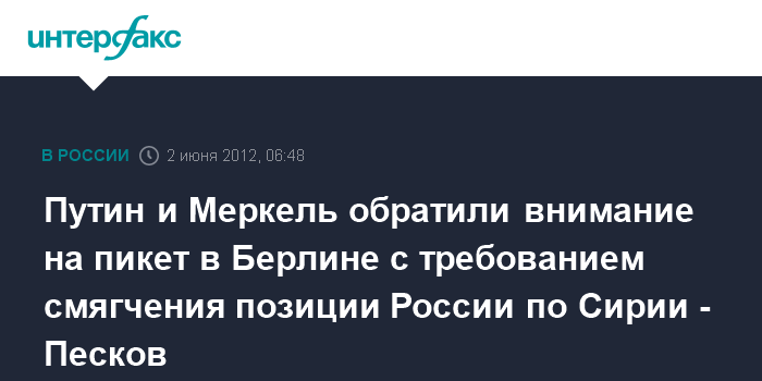 Путин и Меркель обратили внимание на пикет в Берлине с требованием смягчения позиции России по Сирии - Песков