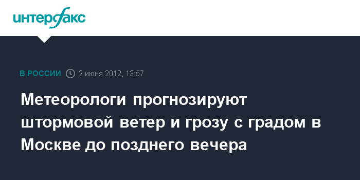 Метеорологи прогнозируют штормовой ветер и грозу с градом в Москве до позднего вечера