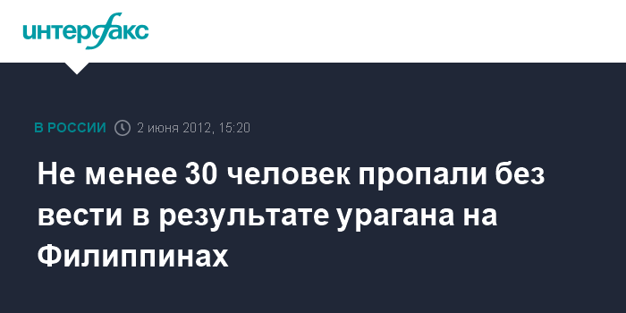 Манила. 2 июня. INTERFAX.RU - Около 30 рыбаков пропали без вести и сотни туристов застряли в аэропортах на Филиппинах в результате мощного тропического урагана "Мавар".