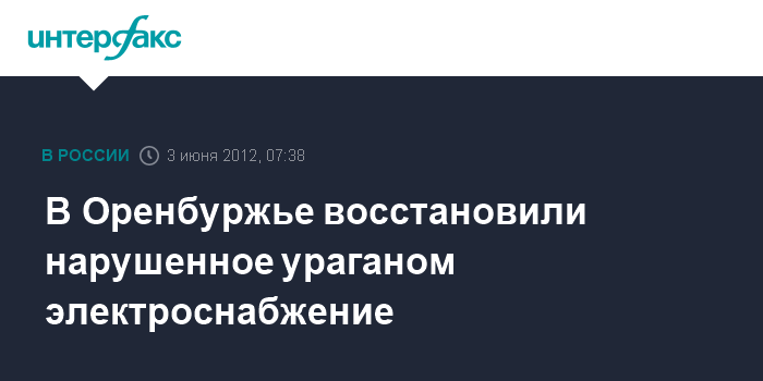 Оренбург. 3 июня. ИНТЕРФАКС-ПОВОЛЖЬЕ - В четырех населенных пунктах Кваркенского района Оренбургской области восстановлено электроснабжение, нарушенное в ночь на воскресенье прошедшим грозовым фронтом.