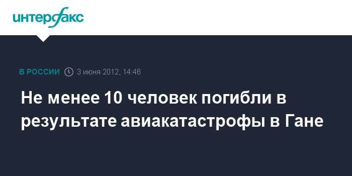 Лондон. 3 июня. INTERFAX.RU - Как минимум, 10 человек погибли в результате падения грузового самолета в столице Ганы Аккре, где он столкнулся с пассажирским микроавтобусом, сообщает в воскресенье Би-би-си со ссылкой на местные власти.