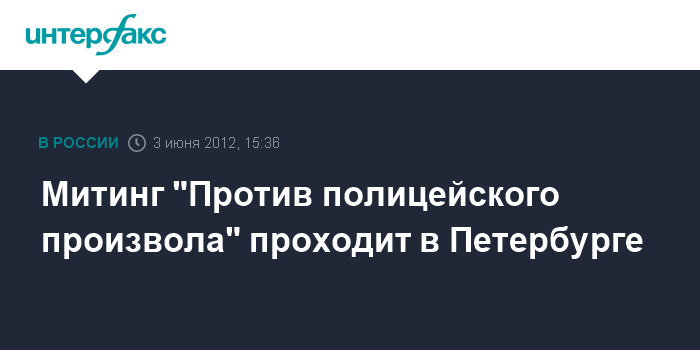 Санкт-Петербург. 3 июня. INTERFAX.RU - Активисты различных оппозиционных организаций Петербурга собрались на Пионерской площади на митинг "Против полицейского произвола". "Сейчас на площади собралось до 500 человек", - сообщил "Интерфаксу" в воскресенье один из участников митинга, депутат городского парламента Максим Резник.