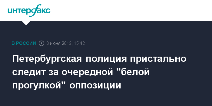 Санкт-Петербург. 3 июня. INTERFAX.RU - Оппозиционеры, не согласные с итогами президентских выборов в РФ, в очередной раз решили провести в Петербурге "белую прогулку", сообщила "Интерфаксу" в воскресенье одна из лидеров оппозиции Ольга Курносова. "Как и обычно, мы стартуем с Исаакиевской площади, мы будем нести в руках белые воздушные шары, украсим себя белыми ленточками (символ протеста - ИФ). Наш маршрут традиционен - от Исаакиевской до площади Искусств", - сказала О.Курносова.