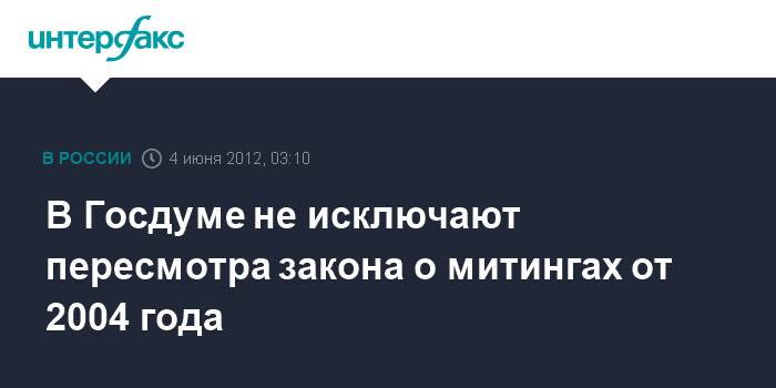 "Возможно, что нам придется более предметно посмотреть весь 54-й закон (Федеральный закон от 19 июня 2004 года N 54-ФЗ "О собраниях, митингах, демонстрациях, шествиях и пикетированиях" - ИФ), который регулирует вопросы, касающиеся собраний, митингов, шествий, пикетирования", - сказал В.Плигин в интервью, которое публикует в понедельник "Российская газета".