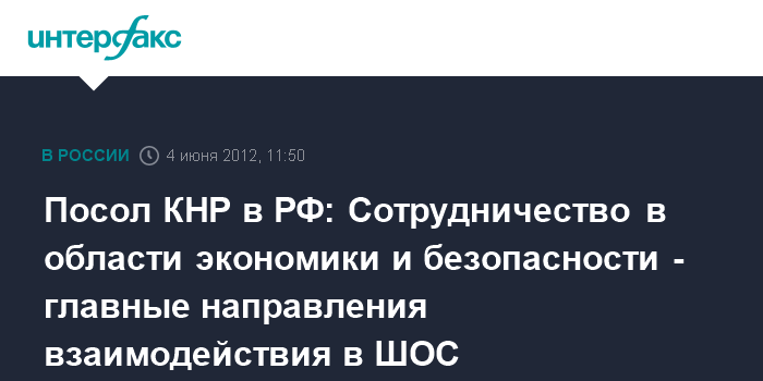 Посол КНР в РФ: Сотрудничество в области экономики и безопасности - главные направления взаимодействия в ШОС