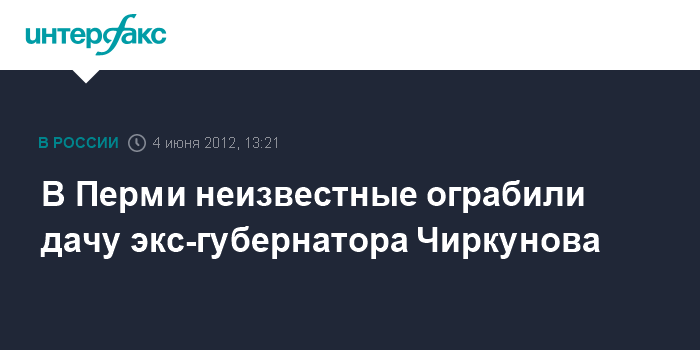 Пермь. 4 июня. INTERFAX.RU - Неизвестные проникли на дачу, которую арендует бывший губернатор Пермского края Олег Чиркунов, и похитили золотые часы, сообщил агентству "Интерфакс-Поволжье" источник в правоохранительных органах региона в понедельник.