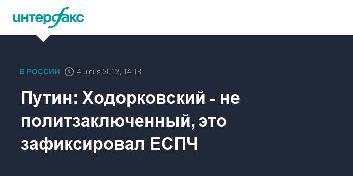 "Что касается так называемых "политических" заключенных. Где бы я ни бывал, поднимается один вопрос: прежде всего о судьбе господина Ходорковского. Как известно, Европейский суд по правам человека зафиксировал, что в уголовном деле и в приговоре в отношении господина Ходорковского нет политических мотивов", - заявил В.Путин журналистам в понедельник после саммита РФ-ЕС.