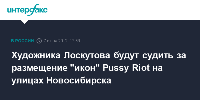 Новосибирск. 7 июня. INTERFAX.RU - Новосибирский художник, организатор ежегодных Монстраций Артем Лоскутов привлечен к административной ответственности за появление в Новосибирске стилизованных под иконы изображений участниц панк-группы Pussy Riot.