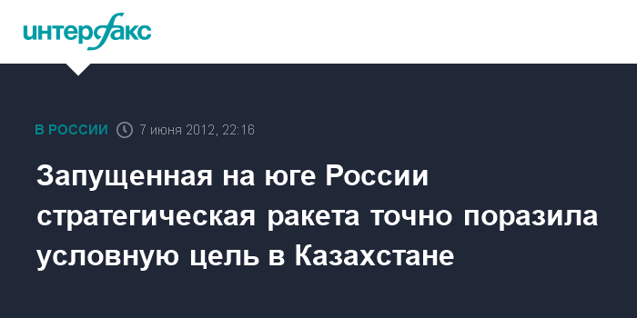 Запущенная на юге России стратегическая ракета точно поразила условную цель в Казахстане
