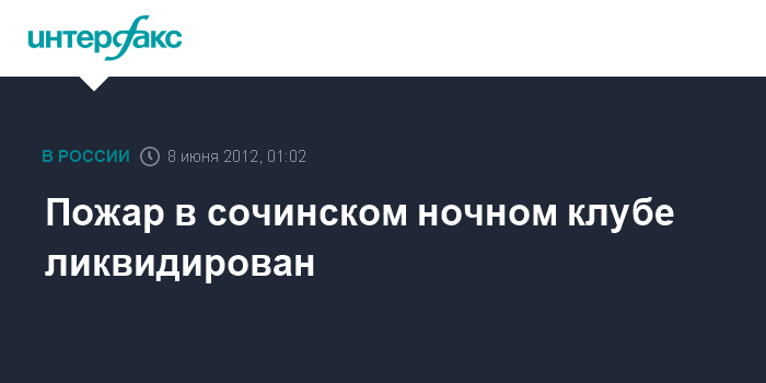 Ростов-на-Дону. 8 июня. INTERFAX.RU - Пожарные в Сочи ликвидировали открытый огонь в ночном клубе "ПЛОТforma", сообщили агентству "Интерфакс - Юг" в пресс-службе Южного регионального центра МЧС.