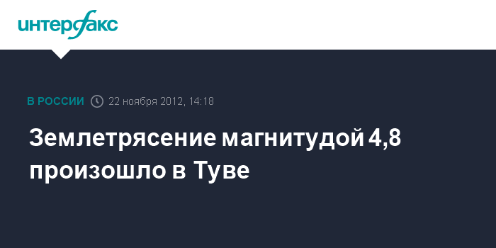 Новосибирск. 22 ноября. INTERFAX.RU - Подземный толчок с магнитудой 4,8 произошел в Туве в четверг, сообщает Геофизическая служба СО РАН.