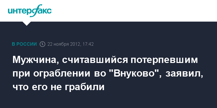 Мужчина, считавшийся потерпевшим при ограблении во "Внуково", заявил, что его не грабили
