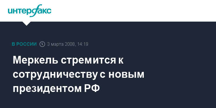 Меркель стремится к сотрудничеству с новым президентом РФ