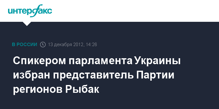 Киев. 13 декабря. INTERFAX.RU - Верховная Рада Украины нового созыва в четверг избрала спикером представителя Партии регионов Владимира Рыбака.