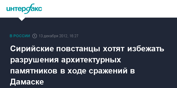Сирийские повстанцы хотят избежать разрушения архитектурных памятников в ходе сражений в Дамаске