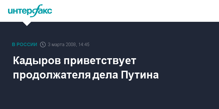 Кроме того, добавил он, Медведев является соратником В.Путина, и это "дает основание быть уверенными в том, что начатое Путиным дело по превращению России в великую державу, по ускоренному развитию экономики России, по восстановлению Чечни будет доведено до конца новым президентом".