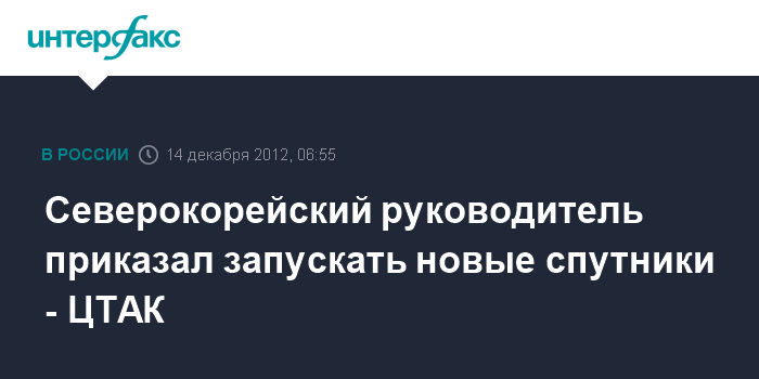 Северокорейский руководитель приказал запускать новые спутники - ЦТАК