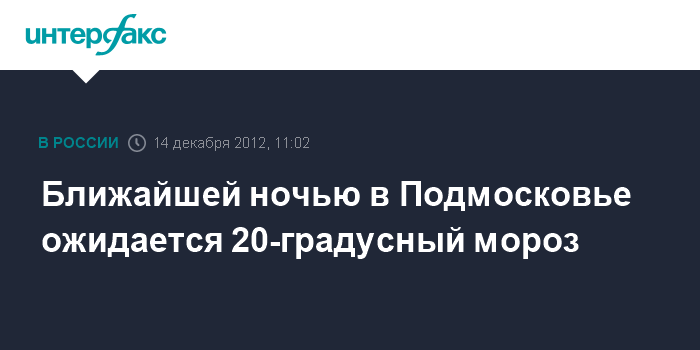 Ближайшей ночью в Подмосковье ожидается 20-градусный мороз