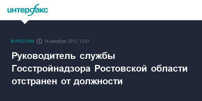 Руководитель службы Госстройнадзора Ростовской области отстранен от должности