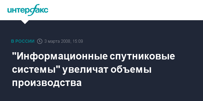 "Информационные спутниковые системы" увеличат объемы производства