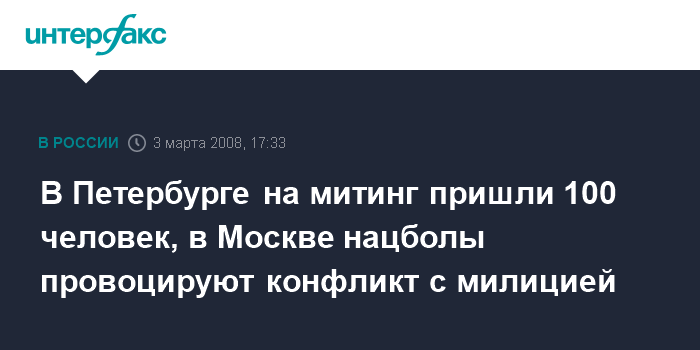 В Петербурге на митинг пришли 100 человек, в Москве нацболы провоцируют конфликт с милицией