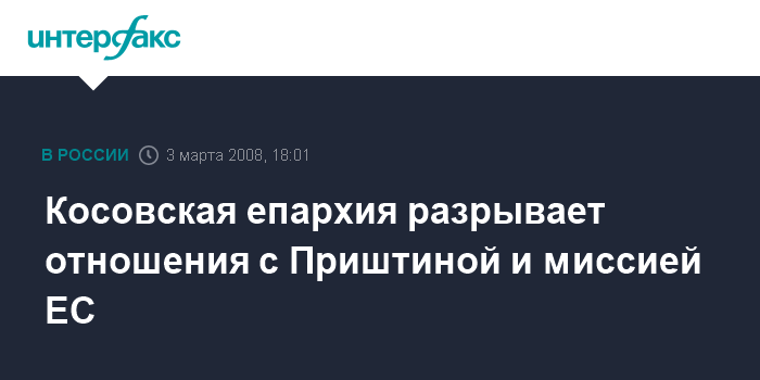 Епископ Артемий заявил, что одностороннее провозглашение независимости Косово, а также решение ЕС об отправке миссии "без решения и в обход Совета Безопасности ООН" нарушают резолюцию СБ ООН №1244 и Конституцию Сербии, "поэтому они нелегитимны и незаконны, а значит, юридически не существуют", сообщают сербские СМИ.