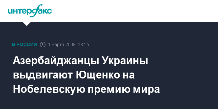 Азербайджанцы Украины выдвигают Ющенко на Нобелевскую премию мира