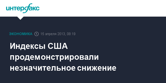 15 апреля. FINMARKET.RU - Американские фондовые индексы в пятницу незначительно опустились после опубликования разочаровавшей инвесторов статистики. Кроме того, отрицательно на фондовые индикаторы повлияло падение цен на сырье, сообщило агентство Bloomberg.