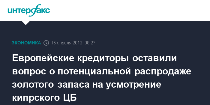 По данным информированных источников, Кипр может продать золото из резервов на 400 млн евро, или примерно 10 тонн. Ранее в ходе операций по спасению европейских стран таких прецедентов еще не было. Вместе с тем сам ЦБ опроверг слухи о готовящейся продаже золота.