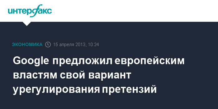 Нью-Йорк. 15 апреля. INTERFAX.RU - Интернет-гигант Google Inc. предложил регуляторам Европейского союза соглашение, которое сняло бы опасения властей в отношении злоупотребления компании своим доминирующим положением на рынке интернет-рекламы, пишет газета The Wall Street Journal со ссылкой на информированные источники.