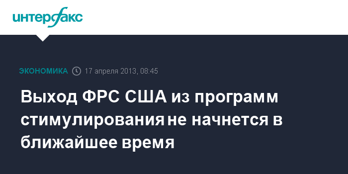 Выход ФРС США из программ стимулирования не начнется в ближайшее время