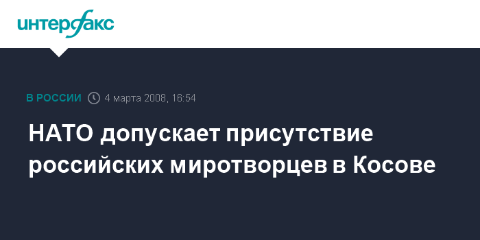 Москва. 4 марта. INTERFAX.RU - В НАТО готовы рассмотреть вопрос о направлении российских миротворцев в Косово.